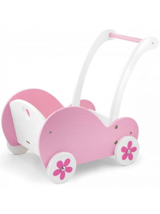 Drewniany wózek dla lalek Viga to klasyczna zabawka, która z pewnością zachwyci każdą małą dziewczynkę. Został starannie wykonany z najwyższej jakości drewna bukowego, co gwarantuje nie tylko trwałość, ale także bezpieczeństwo podczas użytkowania. Elegancki design wózka łączy w sobie kolorystykę bieli i różu, nadając mu wyjątkowego uroku.