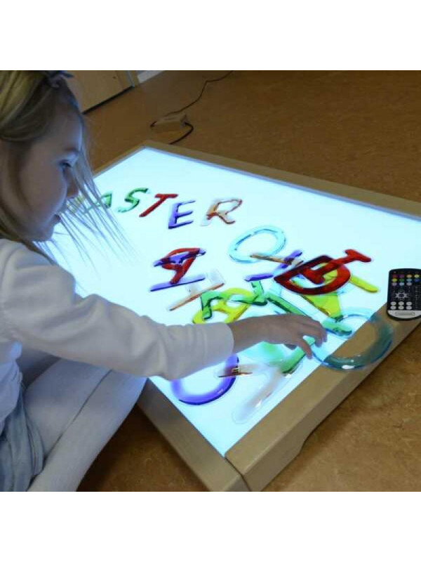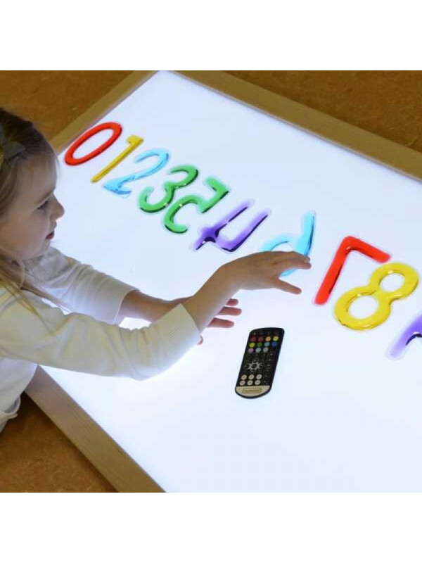 Dzięki różnorodnym kolorom oraz miękkiej strukturze, dzieci mogą układać literki i cyferki na podświetlanej tablicy LED, co dodatkowo stymuluje zmysły i zachęca do kreatywności. Oglądanie elementów pod światło pomaga w rozpoznawaniu kształtów i kolorów, a także rozwija koncentrację i koordynację ręka-oko.