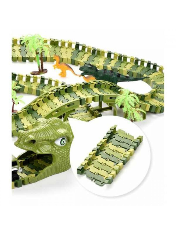 Dzięki ogromnej ilości elementów, dziecko może tworzyć swój wymarzony tor dinozaurów, co rozwija jego wyobraźnię i kreatywność. Elastyczny tor zapewnia doskonałą przyczepność autka, a budowanie toru poprawia zdolności manualne oraz rozwija małą motorykę.