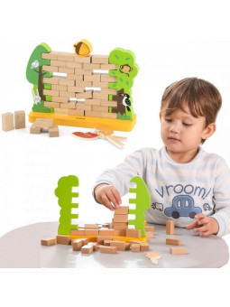 Rozpocznij budowanie ściany przy użyciu specjalnie przygotowanych bloków. Na samą górę połóż drewnianego żołędzia. Zadaniem graczy jest wyciąganie cegiełek ze ściany w taki sposób, aby całość nie runęła. Kiedy ściana upadnie, gra dobiega końca.