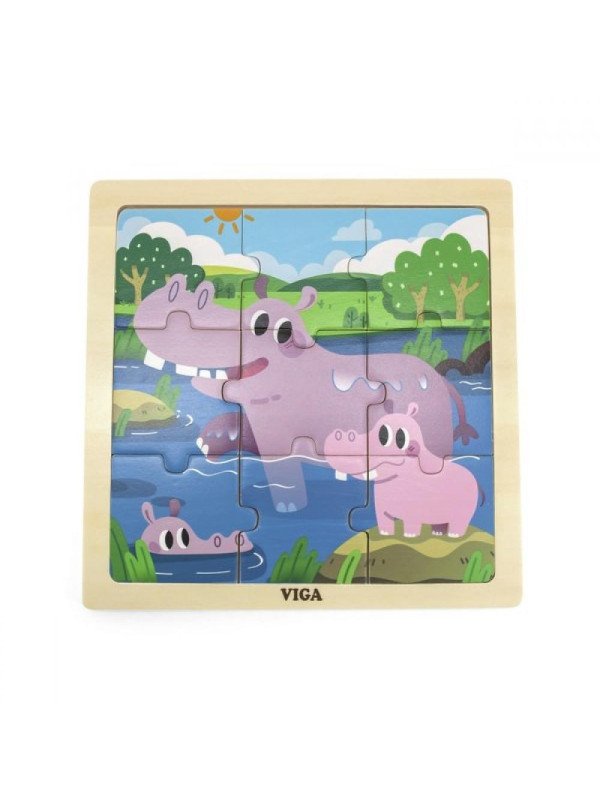 VIGA Poręczne Drewniane Puzzle Hipopotamy - 9 elementów