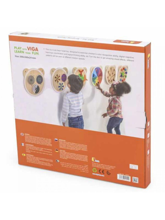 Drewniana Tablica Wirujące Punkty jest jednym z serii edukacyjnych zabawek wykonanych z drewna, o charakterystycznym kształcie głowy misia. Produkt został zaprojektowany z myślą o najmłodszych, aby pobudzać ich rozwój poprzez zabawę. Trzy kręcące się kółka na tablicy są pomalowane w taki sposób, że tworzą różnorodne złudzenia optyczne, co zapewnia długotrwałą i rozwijającą rozrywkę.