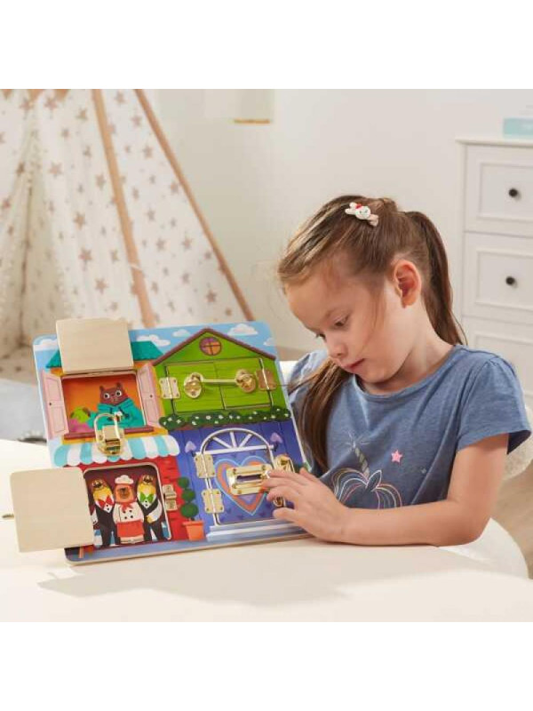 Drewniana Tablica Manipulacyjna z Zamkiem i Zatrzaskiem Dom Montessori