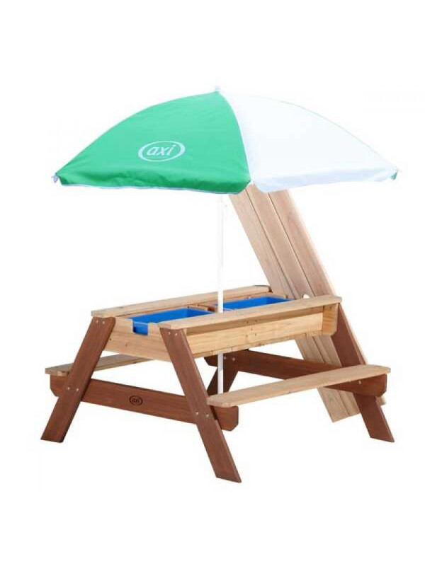 AXI Stół Piknikowy Nick z Ławką i Parasolem oraz Pojemnikami na Wodę/Piasek