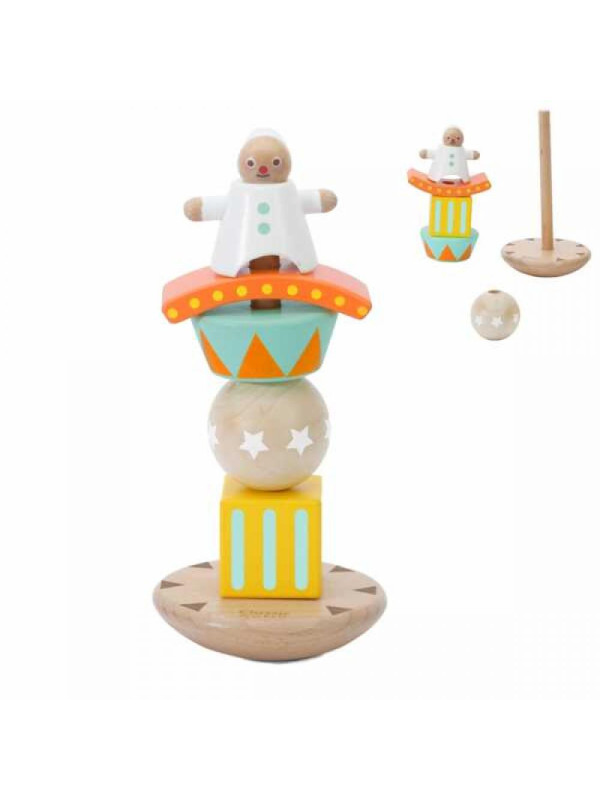 CLASSIC WORLD Drewniana Układanka Piramidka Klocki Balansujący Wesoły Klaun