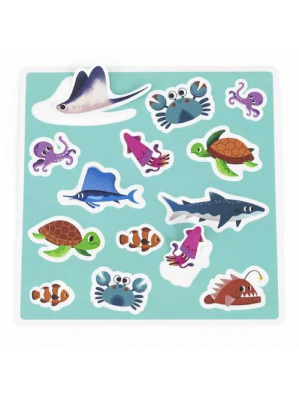 • 26 magnetycznych ryb w różnych kolorach i kształtach, na odwrocie każdej znajduje się litera alfabetu