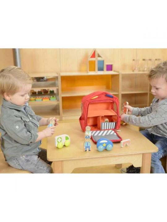 Centrum Alarmowe w jednym plecaku? Takie rozwiązanie oferuje zestaw Masterkidz. To świetnie zaprojektowany plecak, który za pomocą jednego ruchu można przekształcić w centrum alarmowe zawierające szpital, remizę strażacką i komisariat policji.