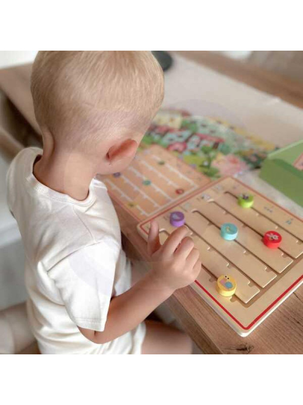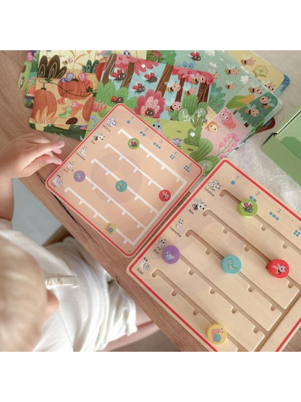 Drewniana gra edukacyjna od Tooky Toy to wspaniała propozycja dla dzieci od 3 roku życia. Wspomaga naukę liczenia poprzez zabawę, przenosząc maluchy w świat małych, leśnych przyjaciół. Dzięki zastosowaniu motywu leśnego, dzieci będą miały okazję poznać i liczyć sympatyczne zwierzątka, takie jak biedronki, ptaszki, ślimaki, gąsienice oraz pszczółki.