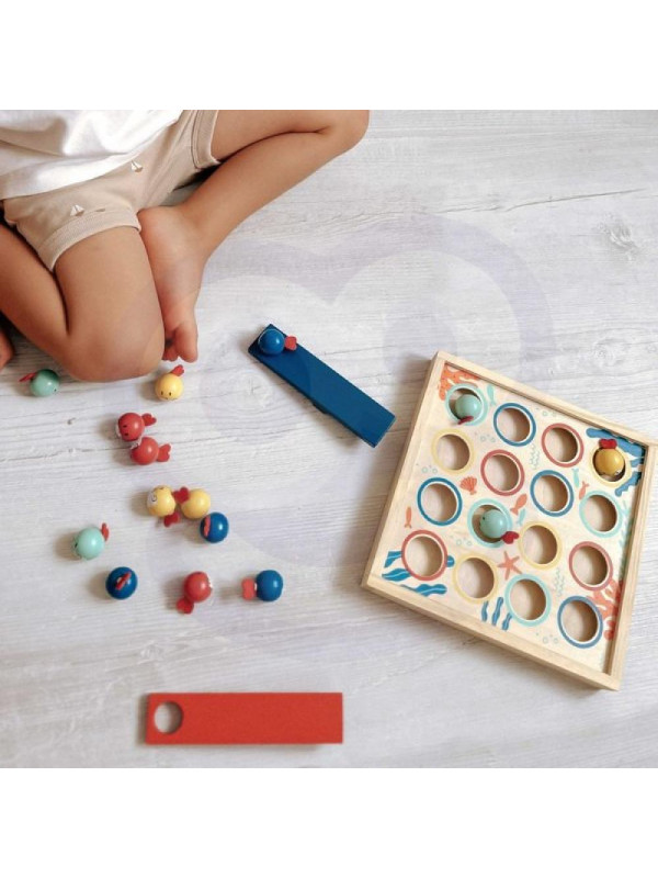 Gra polega na umieszczeniu kolorowej rybki na specjalnie oznaczonej platformie, a następnie wystrzeleniu jej za pomocą specjalnego przycisku. Zadaniem graczy jest umieszczenie rybek w dopasowanych kolorystycznie dołkach na planszy. Gra rozwija umiejętności motoryczne, koordynację wzrokowo-ruchową oraz logiczne myślenie.