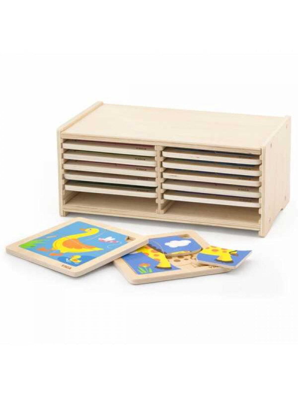 Puzzle drewniane 12 plansz w stojaku Viga Toys
