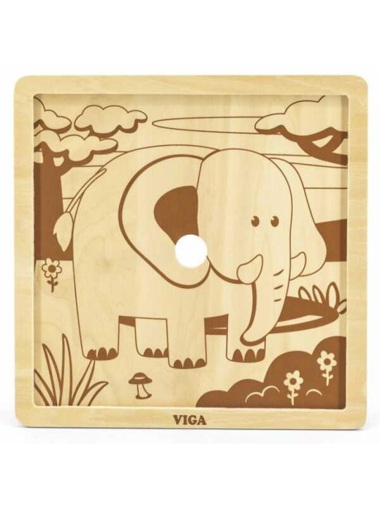 Drewniane Puzzle VIGA to doskonałe rozwiązanie zarówno dla dzieci w domu, jak i w przedszkolu. Zestaw składa się z tablicy oraz 9 elementów, które tworzą obrazek słonia, znacznie ułatwiając maluchom układanie dzięki ilustracji znajdującej się na podstawce.