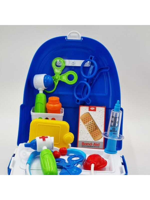 Zestaw przeznaczony jest dla dzieci od 3 roku życia. Plecak w kolorze niebieskim jest jednocześnie gabinetem lekarza, który można łatwo przenosić dzięki regulowanym tasiemkom na ramiona. W zestawie znajdują się wszystkie podstawowe sprzęty, które każdy lekarz musi mieć pod ręką: