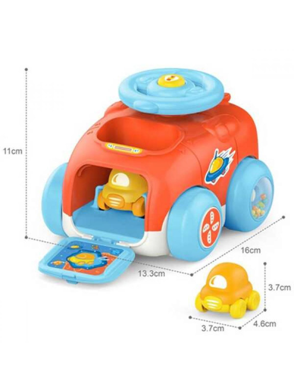 Duży samochód wyposażony jest w sensoryczne elementy, takie jak dźwięki generowane przez obracające się koła. Dzięki temu zabawa staje się jeszcze bardziej atrakcyjna i wspiera rozwój zmysłów dziecka. Dźwięki stymulują słuch, a ruchome elementy wpływają pozytywnie na koordynację ręka-oko.