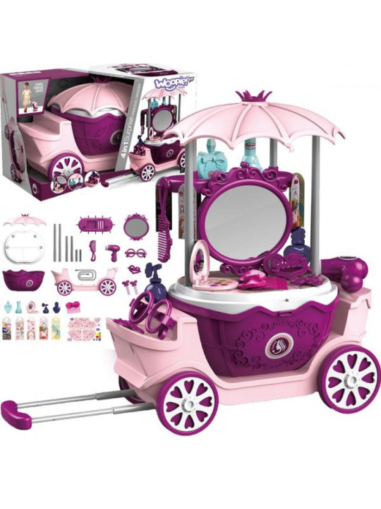 Wózek salonu piękności WOOPIE to wyjątkowa zabawka, która umożliwia dzieciom zabawę w małą makijażystkę i fryzjerkę. Toaletka w formie przenośnego wózka na kółkach jest idealnym rozwiązaniem dla dzieci, które uwielbiają kreatywne zabawy i marzą o otwarciu własnego salonu urody.