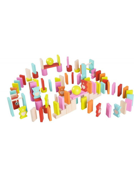 • Wielokolorowy zestaw: klocki w naturalnym, pomarańczowym, różowym, czerwonym, zielonym i niebieskim kolorze przyciągają uwagę dziecka i zachęcają do zabawy.
