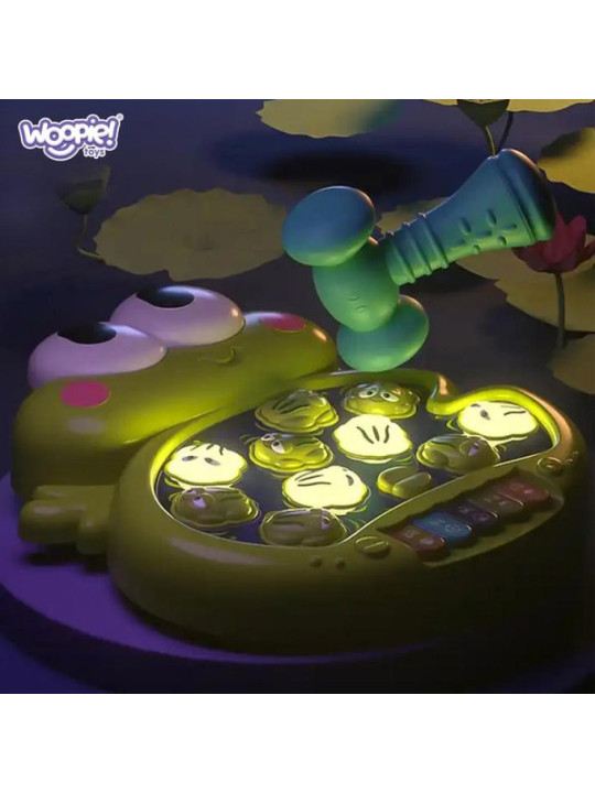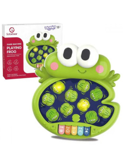 Interaktywna gra polega na uderzaniu miękkim młoteczkiem w podświetlające się żabki. Każda trafiona żabka sprawia, że zabawka wydaje dźwięki i melodie, które maluch z pewnością pokocha. Podczas zabawy dzieci mogą również naciskać kolorowe klawisze, które odgrywają różne przyjemne melodijki.