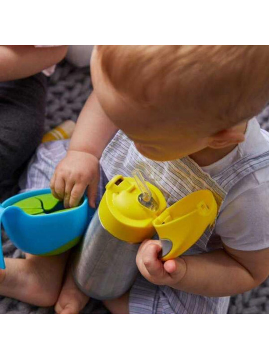 Dzięki temu Twoje dziecko może pić w każdą pogodę. W komplecie uchwyt do przenoszenia butelki. Specjalnie zaprojektowana góra pozwala dzieciom samodzielnie otwierać butelkę.