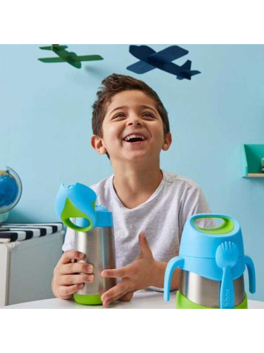 Innowacyjna termobutelka ze słomką marki b.box. Dzięki podwójnym ściankom ze stali nierdzewnej utrzymuje temperaturę do 6 godzin.