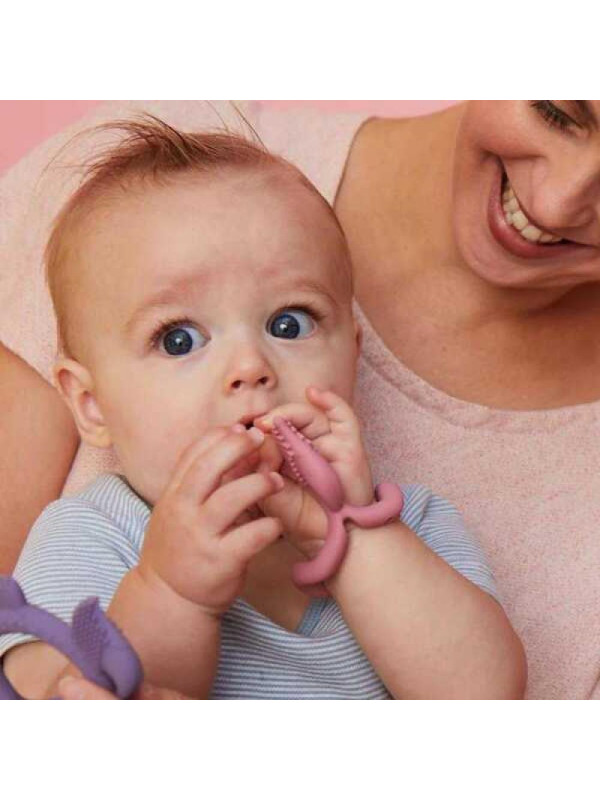 Silikonowy gryzak na nadgarstek. Przynosi ulgę w okresie ząbkowania. Polecany dla niemowląt od 3 miesiąca życia.