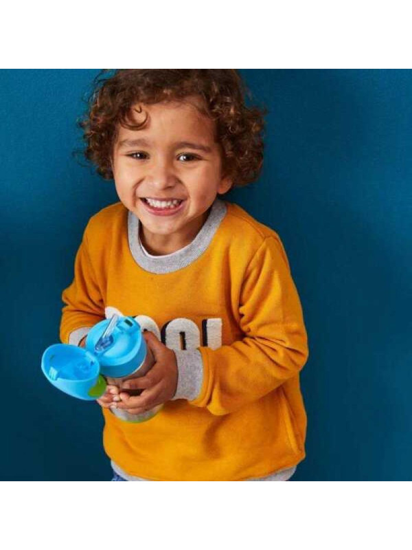 Dzięki temu Twoje dziecko może pić w każdą pogodę. W komplecie uchwyt do przenoszenia butelki. Specjalnie zaprojektowana góra pozwala dzieciom samodzielnie otwierać butelkę.