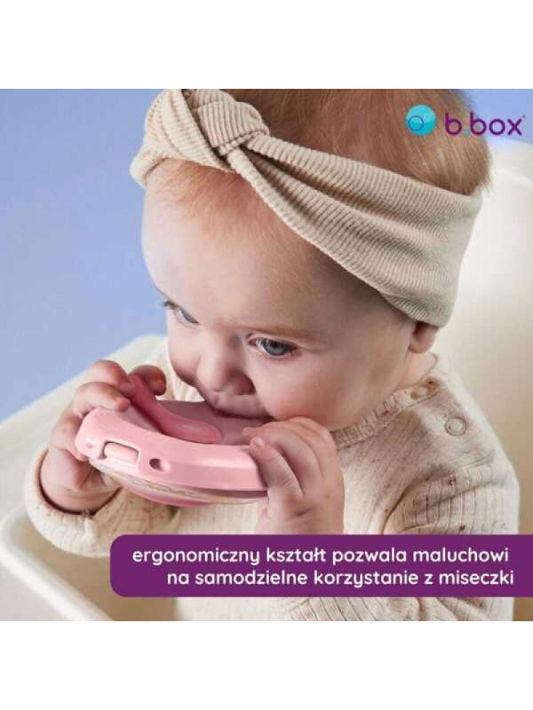 Oryginalna, spłaszczona miseczka silikonowa b.box jest idealnym rozwiązaniem do podawania maluchom przecierów i musów. Wystarczy delikatnie ścisnąć sprężysty pojemnik, a smaczny przecier trafi prosto do buzi malucha przez praktyczny dzióbek w pokrywce. Miseczka jest stworzona nie tylko do przecierów, ale również do podawania jogurtu, budyniu i wielu innych półpłynnych smakołyków. Do zestawu dołączona jest kontrastowa nasadka na ustnik, która nie tylko utrzymuje go w czystości, ale także zapewnia doskonałe uszczelnienie. Szeroki wlew ułatwia napełnianie naczynia, a pokrywka gwarantuje bezpieczne przechowywanie żywności. To rozwiązanie, które pozwala uniknąć niepotrzebnego bałaganu i zachować higienę podczas jedzenia. Elastyczny materiał, z którego wykonana jest miseczka, jest idealnie dostosowany do małych rączek dziecka i umożliwia mu samodzielne jedzenie. Ten niezastąpiony gadżet podróżny jest składany do małych rozmiarów i demontowalny, dzięki czemu jest łatwy do czyszczenia i przechowywania. Teraz karmienie musami staje się prostsze i bardziej komfortowe zarówno dla Ciebie, jak i Twojego malucha. Zalety miseczki do karmienia z dzióbkiem od b.box: • Szeroki wlew do wygodnego napełniania przecierem, musem, budyniem lub kaszką. • Szczelna pokrywka gwarantująca brak wycieków podczas samodzielnego jedzenia. • Pokrywka z dzióbkiem ustawionym pod kątem do łatwego karmienia malucha. • Elastyczny materiał, który poddaje się ściskaniu również przez dziecko. • Praktyczna zatyczka dzióbka, która utrzymuje ustnik w czystości podczas transportu. • Ergonomiczny kształt, który pozwala maluchowi na samodzielne korzystanie z miseczki. • Idealny na czas odstawiania dziecka od piersi i karmienia od 4. miesiąca życia. • Możliwość całkowitego demontażu w celu dokładnego wyczyszczenia. • Możliwość mycia w zmywarce i sterylizacji. Parametry techniczne miseczki fiil + feed b.box: • Materiały: PP (pokrywka) i silikon (miseczka) bez BPA • Wiek dziecka: 4 mies.+ • Pojemność miseczki: 110 ml Wskazówki dotyczące użytkowania miseczki fill + feed od b.box: Można myć w zmywarce (górny kosz) i sterylizować w sterylizatorze (silikonowa miseczka do 200° C i pokrywka PP do 100° C). Zawsze sterylizować zgodnie z zaleceniami producenta. Można używać w kuchence mikrofalowej, należy upewnić się, że pokrywka jest otwarta podczas podgrzewania zawartości. Podgrzewać w odstępach 30 sekund i dokładnie wymieszać. Sprawdzić temperaturę żywności przed podaniem.
