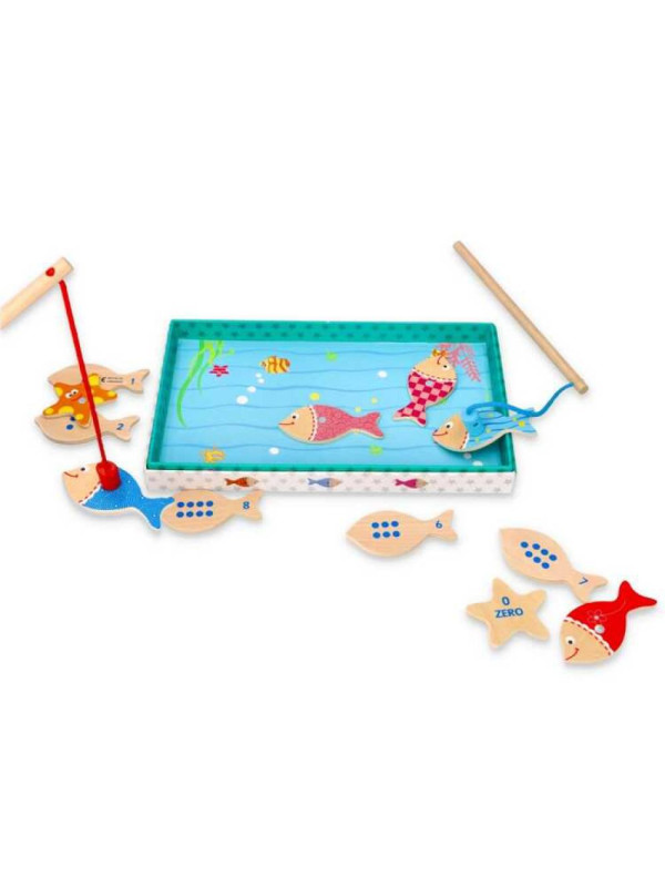 Wszystkie elementy gry wykonane są z drewna, co gwarantuje ich odporność i długowieczność. Kolorowe rybki są przyjemne dla oka, a magnesy umieszczone w wędkach są bezpieczne dla dzieci.