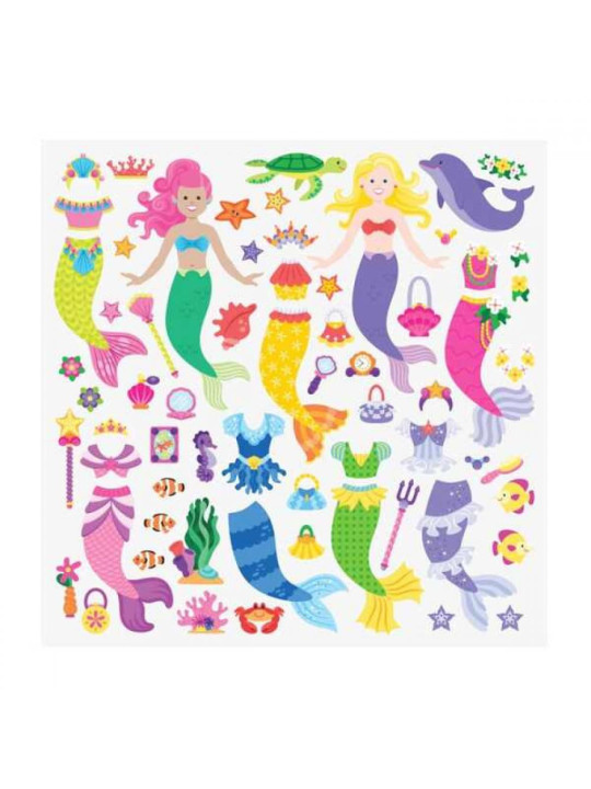 Ten fascynujący zestaw zawiera aż 65 wielokrotnych naklejek w różnych wielkościach i wzorach. Wśród nich znajdziemy dwie syrenki, syrenie stroje, diademy, wiele elementów ozdobnych oraz stworzenia morskie, takie jak rybki, koniki morskie, rozgwiazdy i inne. Wszystkie elementy tego zestawu są pięknie ilustrowane i wykonane z dbałością o szczegóły, co zwiększa atrakcyjność zabawy.