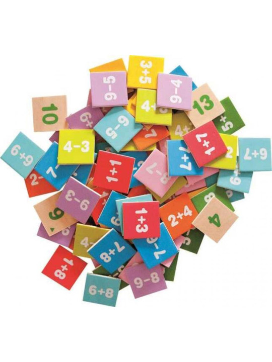 Ten drewniany zestaw do nauki dodawania i odejmowania to idealne rozwiązanie dla dzieci, które rozpoczynają swoją przygodę z liczeniem. Zestaw składa się z 81 kolorowych płytek, na których z jednej strony znajduje się zadanie matematyczne, a z drugiej jego rozwiązanie. Wystarczy obrócić płytkę, aby sprawdzić wynik - to świetny sposób na samodzielną naukę i zabawę w jednym.