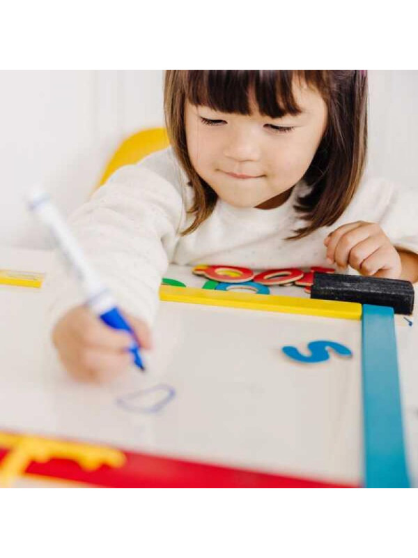 Tablica magnetyczna i suchościeralna od firmy Melissa&Doug to wielofunkcyjne narzędzie edukacyjne, które zapewnia dzieciom wiele godzin kreatywnej zabawy i nauki. Ten wyjątkowy produkt składa się z dwustronnej tablicy: jedna strona jest magnetyczna, a druga suchościeralna. Dzięki temu dzieci mogą bawić się magnetycznymi literkami i cyferkami, a także rysować i pisać zarówno kredą, jak i mazakiem.