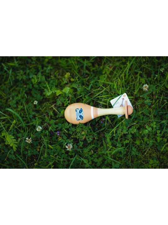 Marakas z szopem to urocza i prosta zabawka muzyczna, która doskonale sprawdzi się również jako grzechotka. Wykonana z lakierowanego drewna, ta pięknie zaprojektowana zabawka przyciąga wzrok delikatnym kolorem oraz grafiką sympatycznego szopa. Idealna dla dzieci od 5. miesiąca życia.