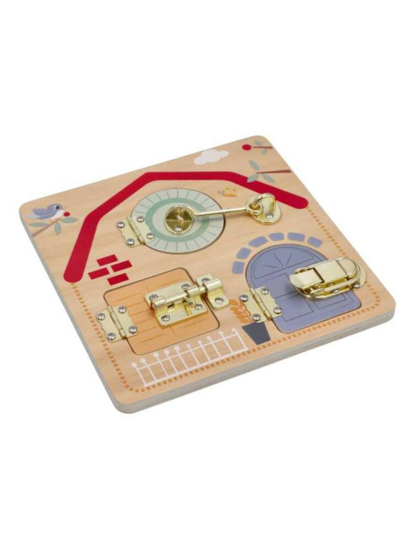 Odkryj wyjątkową tablicę z zamknięciami, która łączy w sobie zarówno układankę, jak i łamigłówkę. Ten kolorowy produkt stanie się ulubioną zabawką dzieci, ucząc jednocześnie nowych umiejętności i wartości. Wykonana z wysokiej jakości drewna i wyposażona w solidne metalowe zamki, tablica zapewnia trwałą i bezpieczną zabawę.