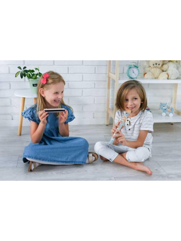 Harmonijka z Króliczkiem wyróżnia się starannym wykonaniem i dbałością o szczegóły. Jej drewniana obudowa gwarantuje trwałość, a plastikowy ustnik wewnątrz zapewnia wysokiej jakości dźwięk. Dzięki niewielkim wymiarom (13,5 x 3 x 2,5 cm) jest idealna do zabaw w domu, na świeżym powietrzu, a także na wyjazdach.