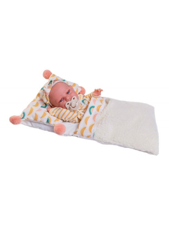• Uroczy zestaw akcesoriów – śpiworek, poduszka i smoczek.