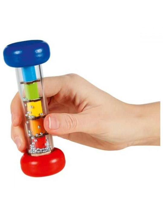Mini deszczownica może także pełnić funkcję grzechotki, którą dziecko może trzymać w rączce. Zabawka jest solidnie wykonana z wysokiej jakości drewna i plastiku, co zapewnia trwałość i długotrwałe użytkowanie.