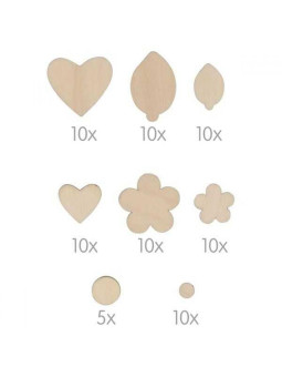 Prezentujemy drewniane elementy w kształcie kwiatów, serc, listków i okrągłych kształtów, które idealnie nadają się do wszelkiego rodzaju prac rękodzielniczych. Ten zestaw umożliwi stworzenie niezwykłych, naturalnych aranżacji o wyjątkowym klimacie.