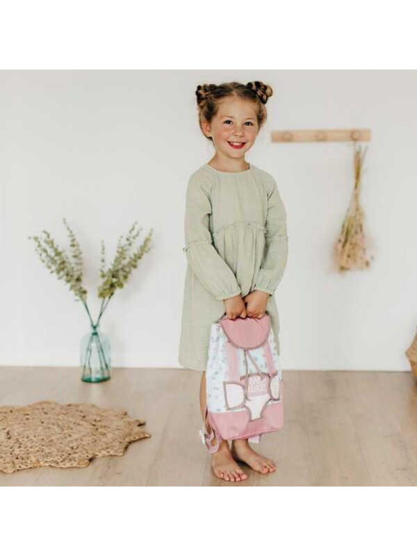 Plecak nosidełko jest częścią serii Baby Nurse, dzięki czemu łatwo można dokupić pozostałe akcesoria, które wspólnie tworzą spójną kolekcję. Produkt jest przeznaczony dla lalek o wysokości do 42 cm. Warto podkreślić, że plecak posiada specjalną kieszonkę na butelkę, co umożliwia dziecku zabranie wszystkich niezbędnych akcesoriów do pielęgnacji lalki.