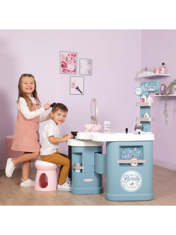 SMOBY Centrum Beauty łączy w sobie aż trzy strefy: fryzjerską, kosmetyczną oraz strefę płatności z terminalem płatniczym, co dodatkowo wprowadza dzieci w świat dorosłych i uczy odpowiedzialności oraz komunikacji.