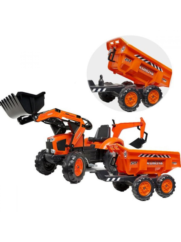 FALK Traktorek Kubota Pomarańczowy z Przyczepką