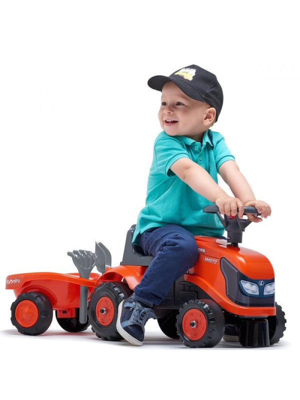 Podaruj swojemu dziecku radość z zabawy i rozwijaj jego umiejętności motoryczne i wyobraźnię dzięki traktorkowi Kubota z przyczepką i akcesoriami!