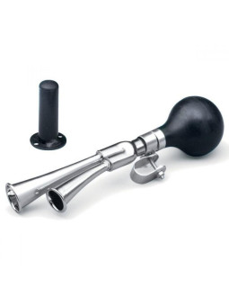 Trąbka dwutonowa jest elegancka i stylowa, wykonana z trwałego metal, co zapewnia jej odporność na uszkodzenia. Posiada solidne wykończenie w kolorze szarym, co sprawia, że doskonale komponuje się z nowoczesnym designem gokartów. Gumowa gałka do naciskania jest czarna, dodając retro akcent. Trąbka przeznaczona jest tylko do większych modeli, co zapewnia jej stabilne mocowanie i bezpieczne użytkowanie.