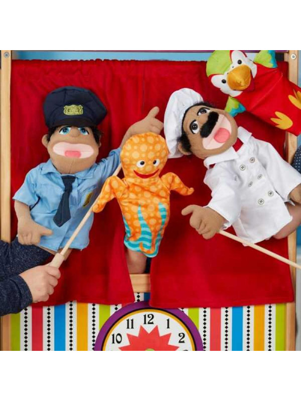 • Komplet zawiera cztery różnorodne pacynek: pies, kot, królik i papuga.