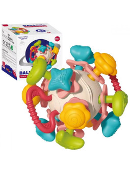 • 4w1: grzechotka, gryzak, sensoryczna zabawka rozwijająca motorykę