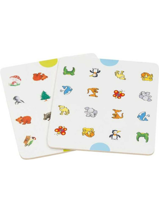 - 3 drewniane, dwustronne karty z obrazkami (łącznie 6 motywów)