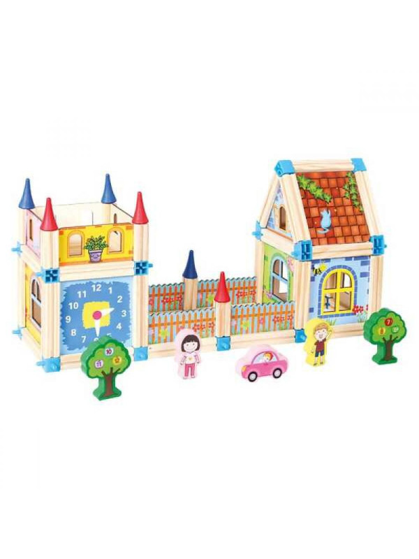 Klocki drewniane Zestaw konstrukcyjny Castelo 128 elementów