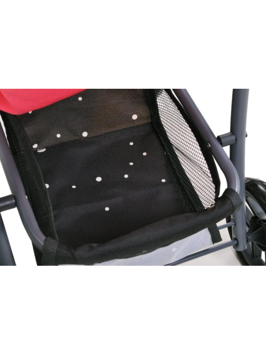 Różowa spacerówka Liba NICI Knorr Toys 80210 to nowoczesny i funkcjonalny wózek dla lalek, który zachwyci każdą małą dziewczynkę. Wózek wykonany jest w klasycznej kolorystyce, gdzie dominuje różowy kolor, z kontrastowymi czarnymi wstawkami i białymi groszkami na daszku oraz koszu.