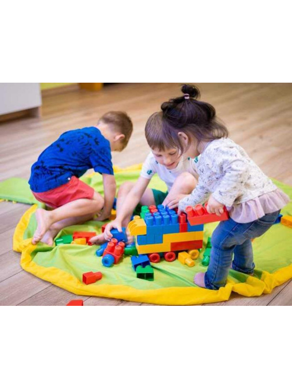 Wielofunkcyjny worek animacyjny Worek animacyjny został stworzony z myślą o dzieciach, ich rodzicach i o animatorach. Łączy w sobie funkcję : worka do przechowywania zabawek, klocków, pluszaków, piłeczek i wszelkiego rodzaju akcesoriów animacyjnych maty do zabawy - po rozłożeniu mamy do dyspozycji kolorową, okrągłą matę o średnicy aż 1,5 m przenośnej torby na zabawki lub sprzęt animacyjny, która pomieści bardzo wiele chusty animacyjnej po rozłożeniu można wykorzystać go w zabawie jako alternatywę chusty     Wielofunkcyjny worek animacyjny sprawdzi się : - w pomieszczeniu jak i na zewnątrz - podczas zabaw i spacerów na świeżym powietrzu i animacji na zielonej trawie - jako koc piknikowy - jako torba do przetransportowania zabawek na wakacje lub sprzętu na animacje - jako mata podczas zajęć przedszkolnych, integracyjnych, urodzinkach i innych - w utrzymaniu porządku w pokoju dziecka  - w czasie wyjazdów i wakacji - do przewiezienia zabawek i potem jako miejsce do zabawy - jako dodatkowa opcja przechowywania rzeczy wszelkiego rodzaju Co go wyróżnia: - wytrzymały i wodoodporny materiał - łatwy w utrzymaniu czystości - żywe i ciepłe kolory - szeroki i wygodny uchwyt na ramię - sznurek ściągający ze stoperem zabezpieczający rzeczy przed wysypaniem się z worka - praktyczny pokrowiec na stałe połączony z matą, po spakowaniu zajmuje niewiele miejsca - rzep na środku po wewnętrznej stronie, który można wykorzystać w zabawie lub animacjach    przyczepiając różne elementy - szerokie zastosowanie ! Wymiary: średnica 1,5 m Dostępna kolorystyka: zielony, niebieski, tęczowy
