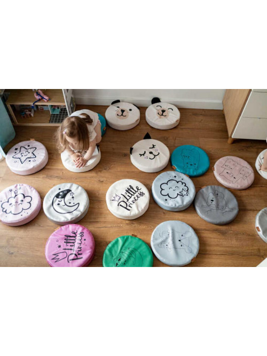 Poduszki białe ekoskóra PIESEK z uszkami 1 szt. 6 cm AKSON   Poduszki o grubości 6 cm to ważny element wyposażenia każdego animatora, przedszkola i szkoły. Idealnie sprawdzi się w każdym dziecięcym pokoju.   Poduszki mają szerokie zastosowanie w pracy z grupą. Idealnie sprawdzą się we wszelkiego rodzaju  zajęciach edukacyjnych i integracyjnych. To doskonałe narzędzie do gier zespołowych w pomieszczeniach jak i w plenerze, umożliwia czerpanie radości płynącej z ruchu i przebywania w grupie. Poduszki wypełnione są wkładem z gąbki, co sprawia że są wygodne a zarazem lekkie i bezpieczne, dzięki czemu mogą nawet spełnić rolę dysku do rzucania!  Materiał: barwny, wytrzymały (EKO SKÓRA) Produkt, dzięki swojej strukturze jest bardzo łatwy do dezynfekcji!   Średnica: 30 cm Wysokość: 6 cm    Wzory do wyboru: PIESEK z uszkami -  oczka otwarte PIESEK z uszkami - oczka zamknięte     Produkt zalecany dla dzieci powyżej 3 miesiąca życia Produkt polski.  Centrum Akson jest producentem chust animacyjnych akson, a także woreczków i szarf gimnastycznych, tuneli animacyjnych, kolorowych piłeczek do suchych basenów i zabaw z chustą i wielu innych akcesoriów edukacyjnych i animacyjnych. Od lat jest też propagatorem Pedagogiki Zabawy i Pedagogiki Cyrku w Polsce i poza granicami kraju. Kupuj najlepsze! Kupuj u źródła!   Cena za sztukę