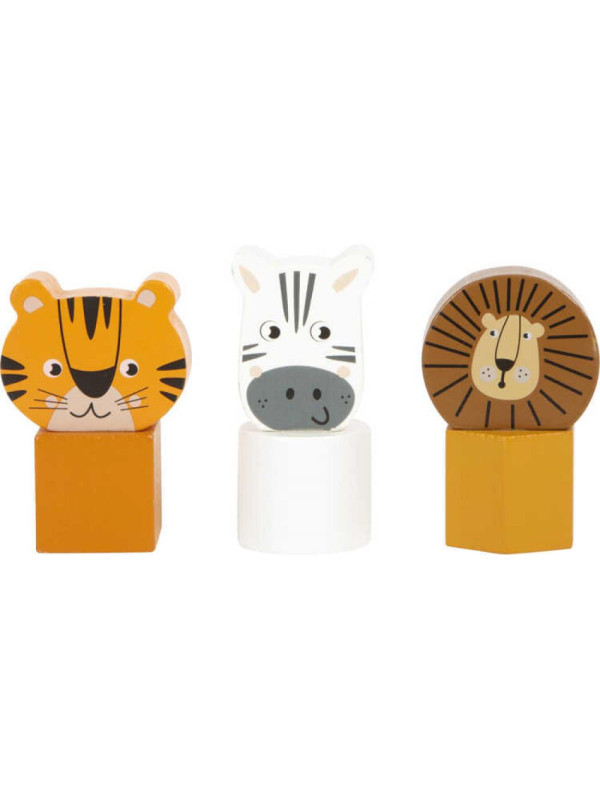 • W zestawie gra kształtów z trzema figurkami zwierząt safari