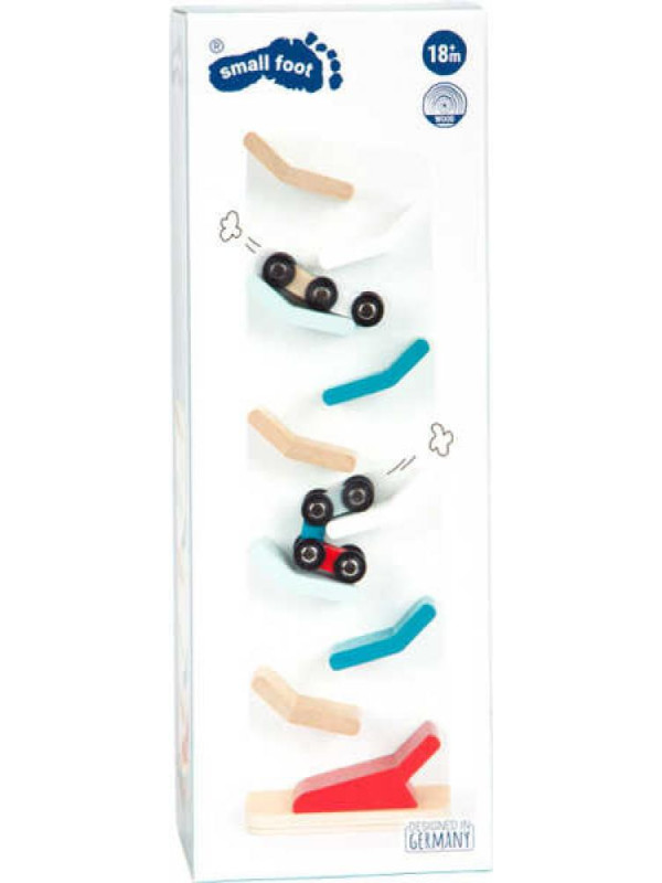 Zjeżdżalnia składa się z pionowej białej tablicy oraz nachylonych platform w różnych kolorach, które tworzą tor do zjeżdżania dla małych samochodzików. Kolory platform to naturalne drewno, biały, jasnoniebieski, ciemnoniebieski, turkusowy i czerwony. Platformy są ułożone w taki sposób, że autka mogą zjeżdżać z jednej na drugą, od góry do dołu, zapewniając zabawę na długi czas.