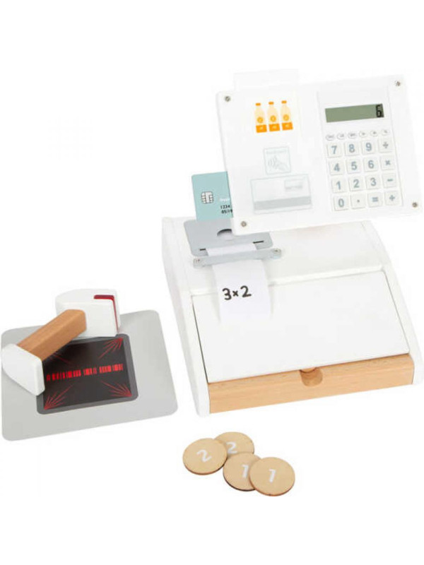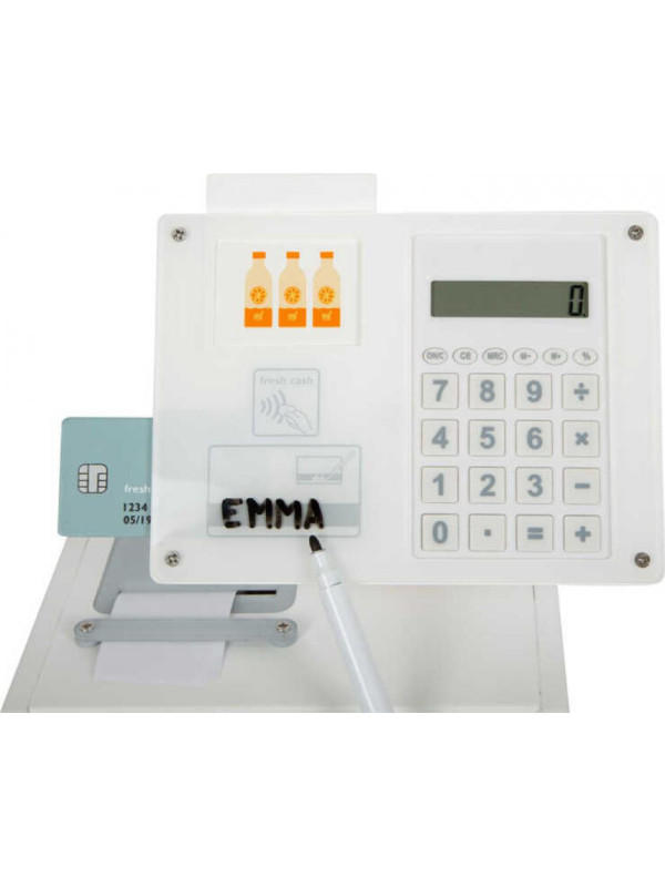 Kasa Sklepowa "fresh" charakteryzuje się nowoczesnym, nordyckim designem z dużą ilością widocznych elementów drewnianych. Jej solidne wykonanie z drewna i plexiglasu zapewnia długowieczność oraz estetyczny wygląd, który doskonale komponuje się z innymi zabawkami z linii "fresh".